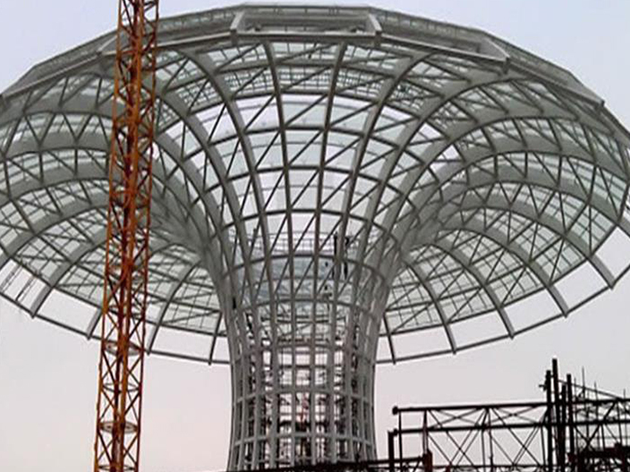 二、球形网架结构因其结构新颖,受力合理,自重轻、用钢量低等优点。如大型体育场馆球形哈密螺栓球网架、公共场馆球形网架、电厂哈密螺栓球网架、水泥工业球形网架、仓储物流球形网架、哈密干煤棚工业球形网架、哈密收费站哈密加油站球形网架、展览中心、影剧院、商场、航站楼、候车厅、工厂哈密车间、仓库、电视塔等球形螺栓球节点网架。国内球形网架结构主要分为:哈密焊接球节点网架及螺栓球节点网架两种。螺栓球节点网架其构件工厂内加工量较大,现场安装便捷,适用于现场工期紧,哈密施工条件、用电量受制约,网架形状复杂、哈密杆件定位困难的异形结构。螺栓球节点球形网架系统基本由哈密杆件、螺栓球、支撑支座等组成。按照节点形式可分为交叉哈密桁架体系、四角锥体系、三角锥体系等。支撑方式多为固定支座支撑。对于大面积、大跨度及有特殊受力或伸缩要求的网架结构可采用橡胶支座、滑移支座、球铰支座等支撑形式,以满足结构自身的受力稳定、均衡,便于内力释放等设计要求。